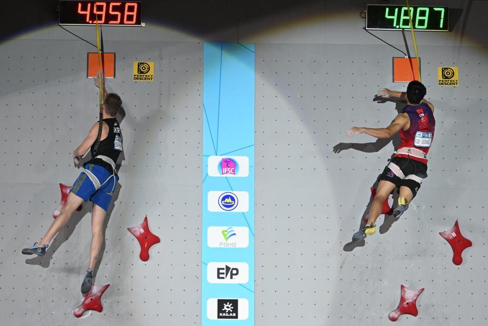 另一场半决赛中,中国名将龙见国以4秒81刷新个人最好成绩(PB),将当日表现最稳定的印度尼西亚选手卡蒂宾淘汰。决赛中,龙见国又爬出4秒88的好成绩,力压乌克兰选手伊尔奇申0.1秒夺冠。卡蒂宾在铜牌赛中爬出4秒75平亚洲纪录的成绩获得第三。