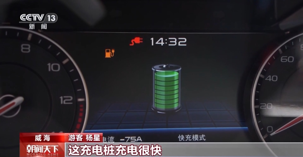 游客 杨星:这充电桩充得很快,半小时就从50%充到了100%,充电体验很好。