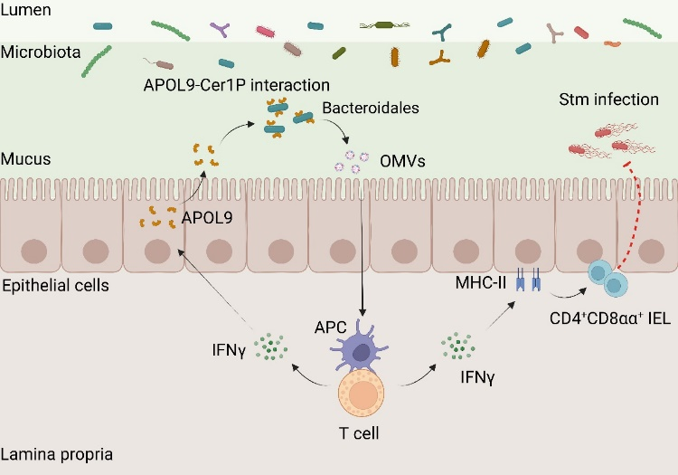中国科学院上海营养与健康研究所联合中国科学院分子细胞科学卓越创新中心团队研究发现,一种名为APOL9的蛋白能够与特定细菌建立精细化合作,助力维持肠道免疫稳态。该蛋白能够精准识别一类拟杆菌目共生细菌,识别后它并不会直接杀菌,而是诱导其释放信号与机体“对话”,帮助触发有益的免疫反应,从而显著提升肠道对有害菌的防御能力。该研究揭示了肠道菌群调控免疫新机制,破译了其中的分子密码,将为人类肠道疾病治疗开辟新的路径。