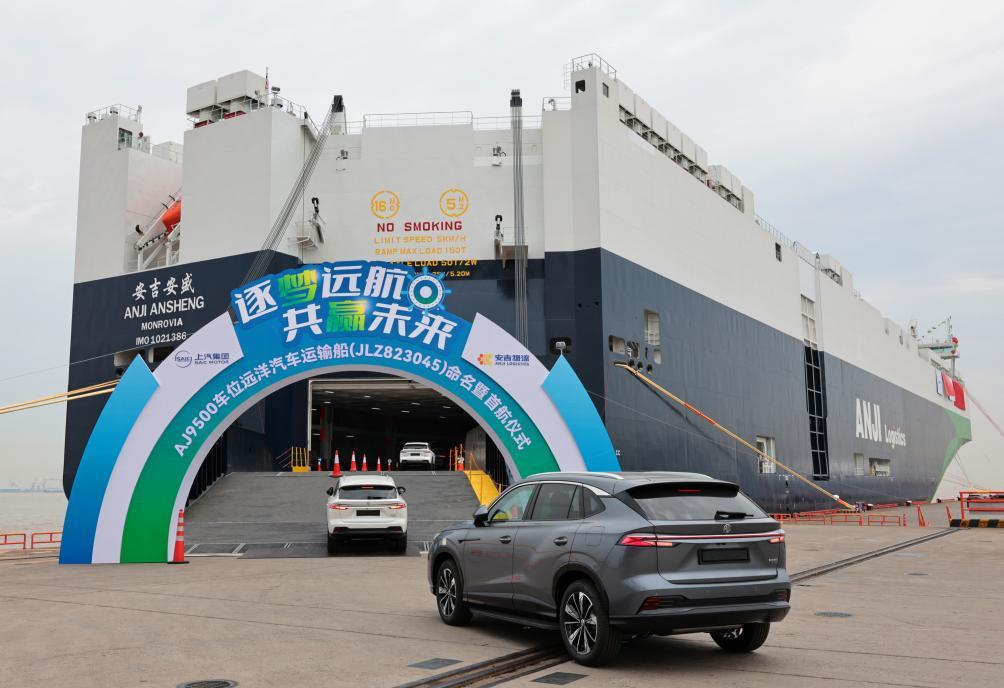 新华社上海5月15日电(记者周蕊、周文其)中国自主制造、9500车位的超大型汽车滚装船“安吉安盛”轮15日晚开启首航,装载7000辆中国制造汽车从上海出发前往欧洲。