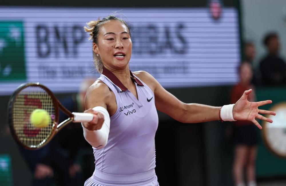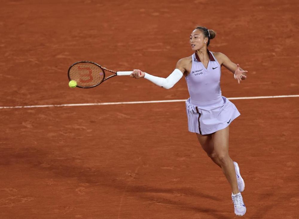 郑钦文在比赛中回球。新华社记者 李京 摄