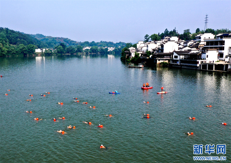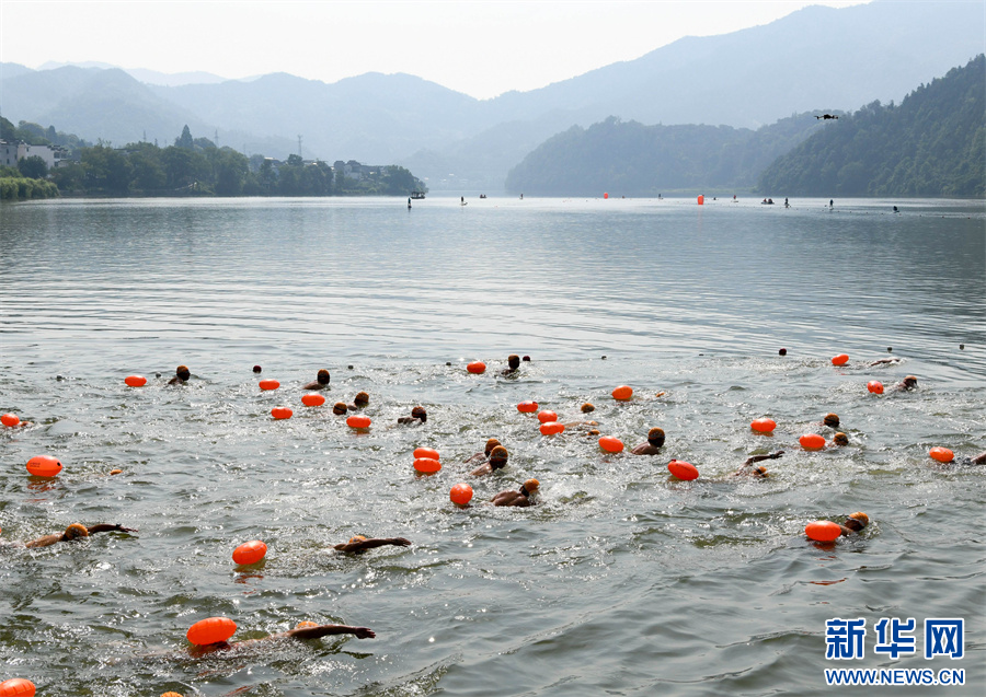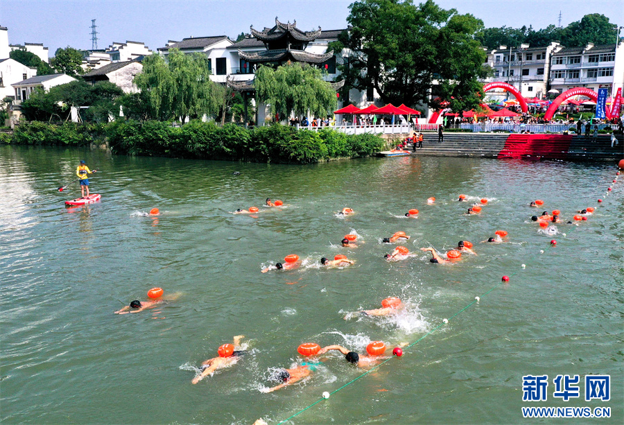 当日,2025长三角黄山(歙县)新安江公开水域游泳邀请赛在安徽省黄山市歙县新安江南屏段举行,来自长三角地区的28支参赛队伍、300余名游泳选手分组进行比赛。选手们在新安江上劈波斩浪,奋勇争先,吸引了众多游客驻足观看。新华网发(过仕宁 摄)