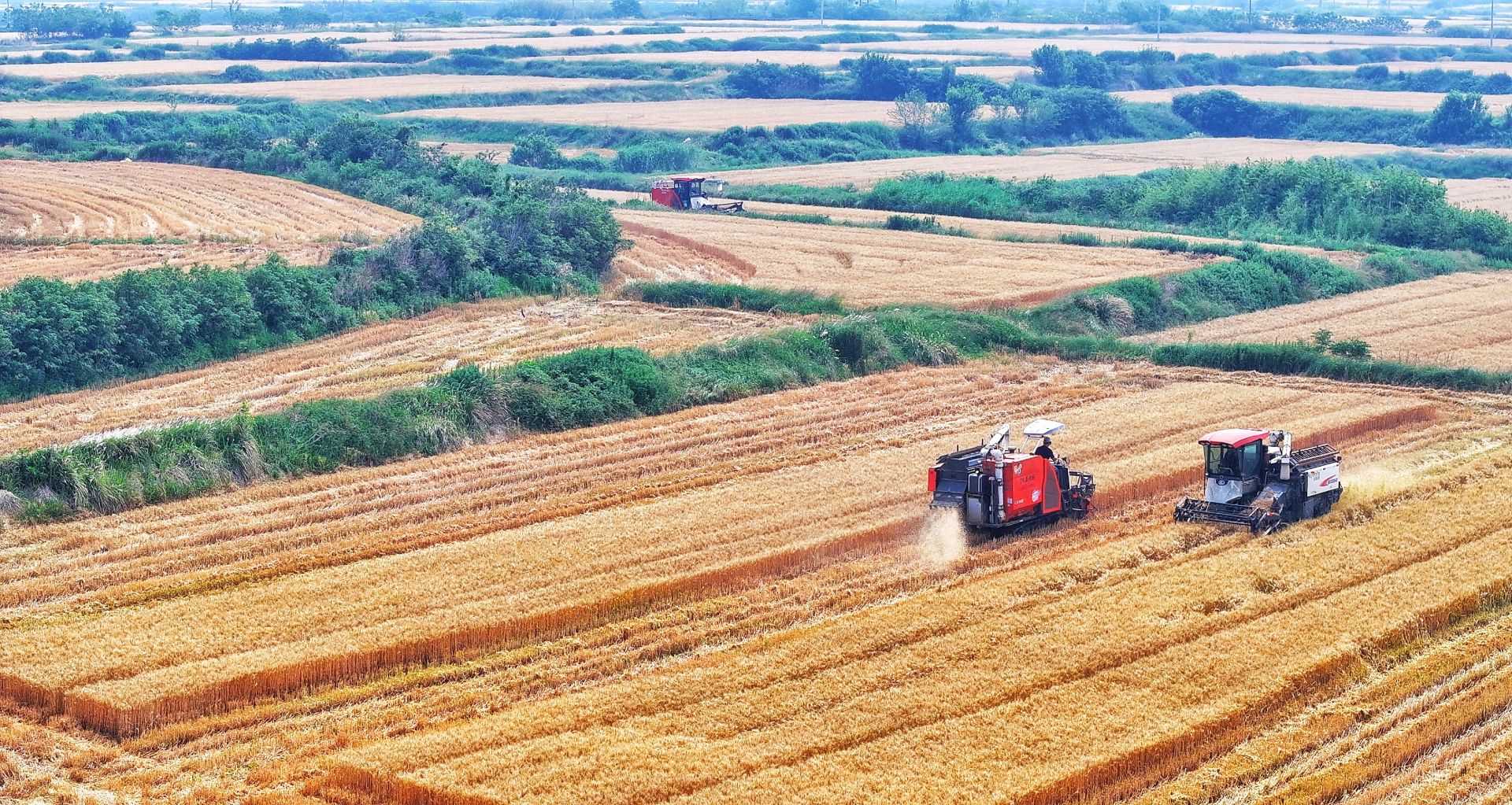 “三夏”时节,多地小麦成熟,大地一片金黄。眼下,全国各地正抢抓农时,由南到北有序推进小麦收割。