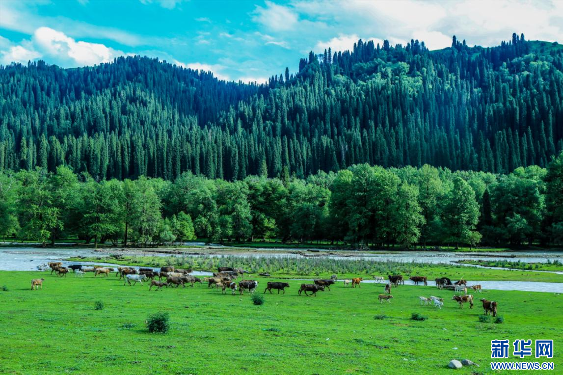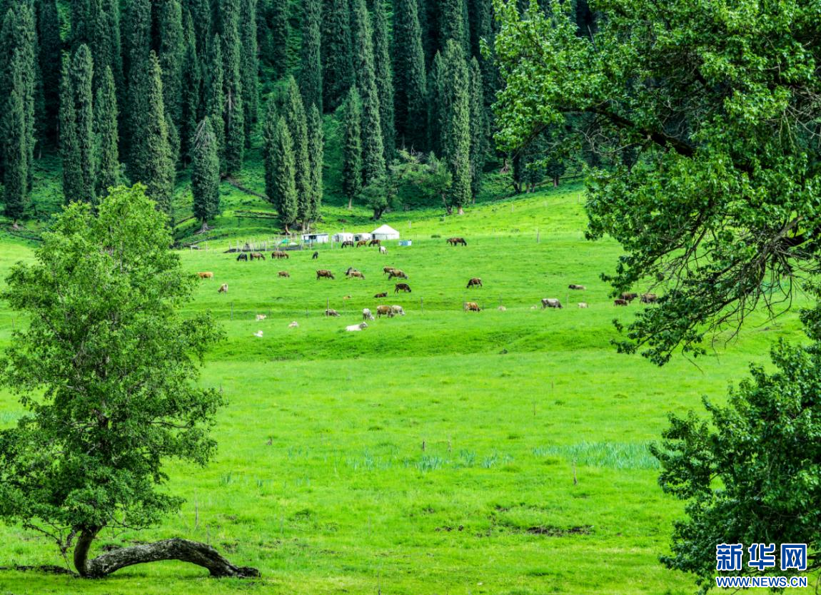踏入新疆新源县萨哈景区,沃尔塔塔吾夏牧场仿若跌进一幅流动的诗意画卷。广袤的原野铺展至天际,鲜嫩的绿草如碧玉织就的绒毯,在微风中泛起层层柔波,牛羊低头轻吻着青草,它们悠然自得的身影,为这片草原增添了灵动的韵律。错落有致的毡房似洁白的花朵,静静点缀在绿野之上,袅袅炊烟升腾而起,与天边的云霞交融,勾勒出一幅宁静悠远的塞外牧歌图景。