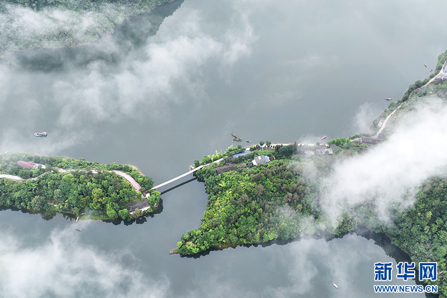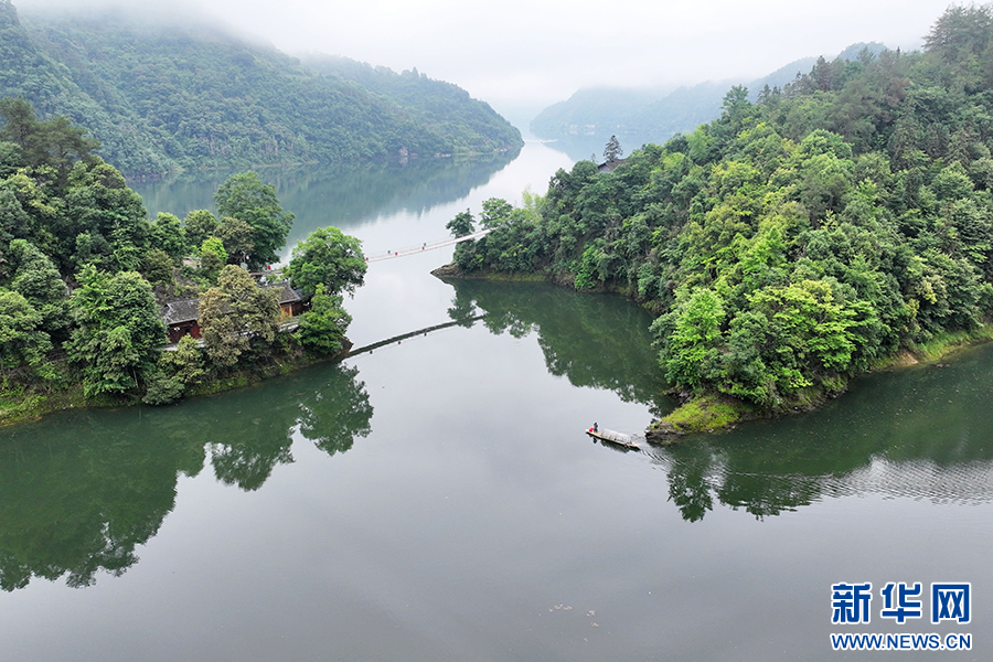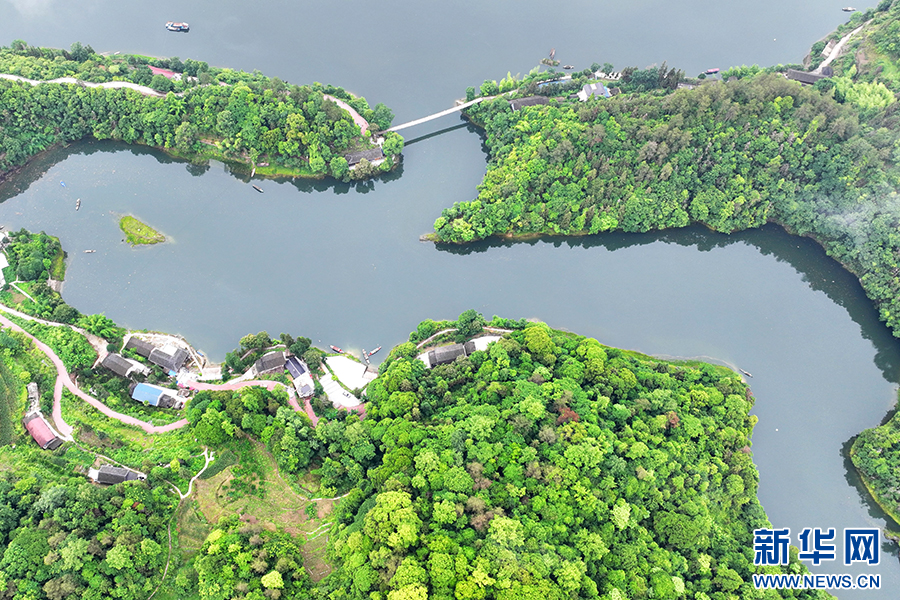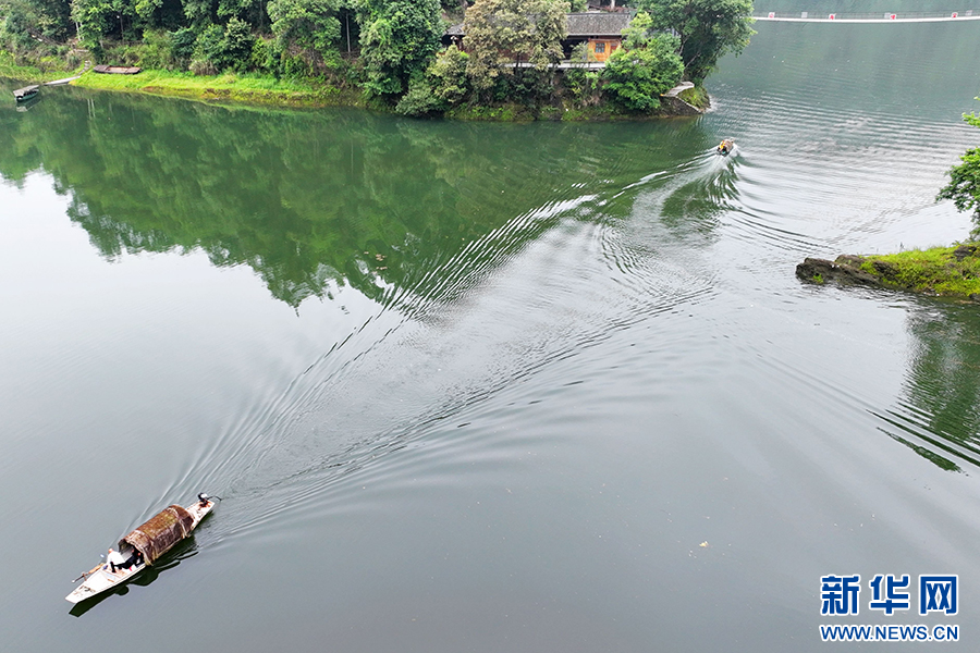 小船缓行其间,在水面划出美丽的波纹,展现出巴渝和美乡村的“高颜值”。新华网发(陈碧生 摄)