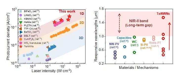 △TeNWNs光电流密度和光谱范围