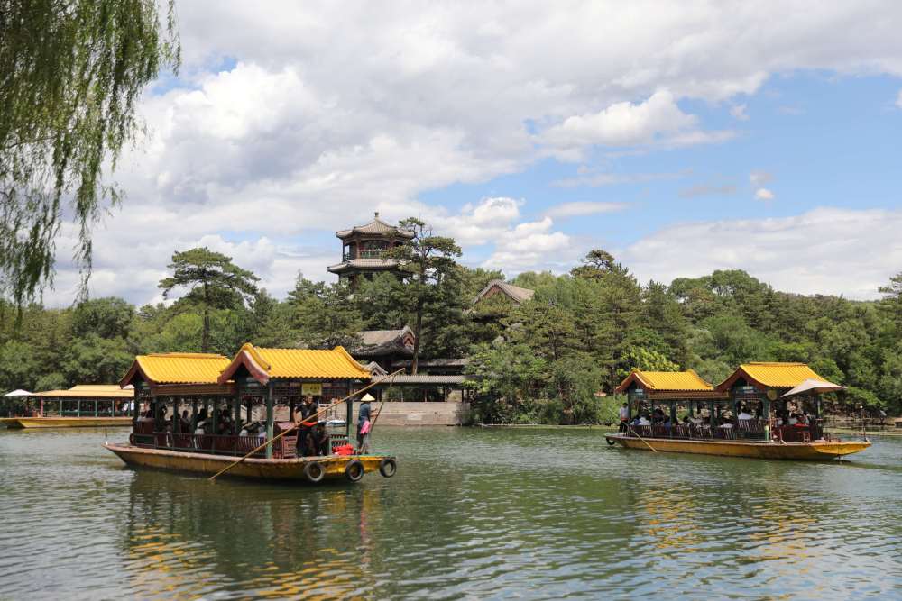 2023年7月8日,游客在承德避暑山庄乘船游览。