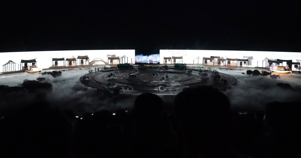 2025年5月29日,观众在承德元宝山脚下观看实景演出《鼎盛王朝·康熙大典》。该演出以承德独特的自然元素和人文元素为创作基础,讲述了从修建避暑山庄到确立华夏版图的宏大历史故事。