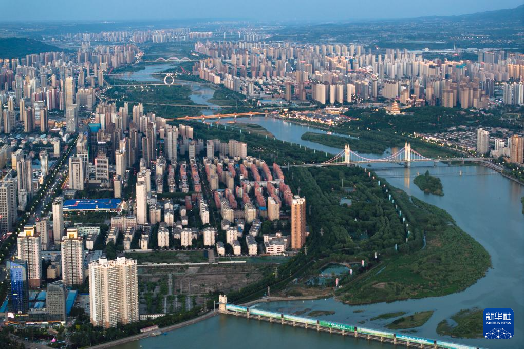 宝鸡市渭河两岸景色(无人机照片,2024年9月5日摄)。