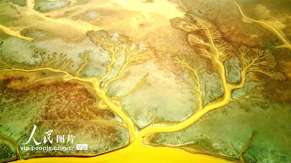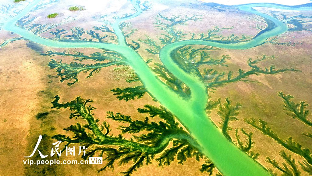 2025年6月11日,航拍位于山东省东营市的山东黄河三角洲国家级自然保护区生态湿地景观。刘智峰摄(人民图片网)
