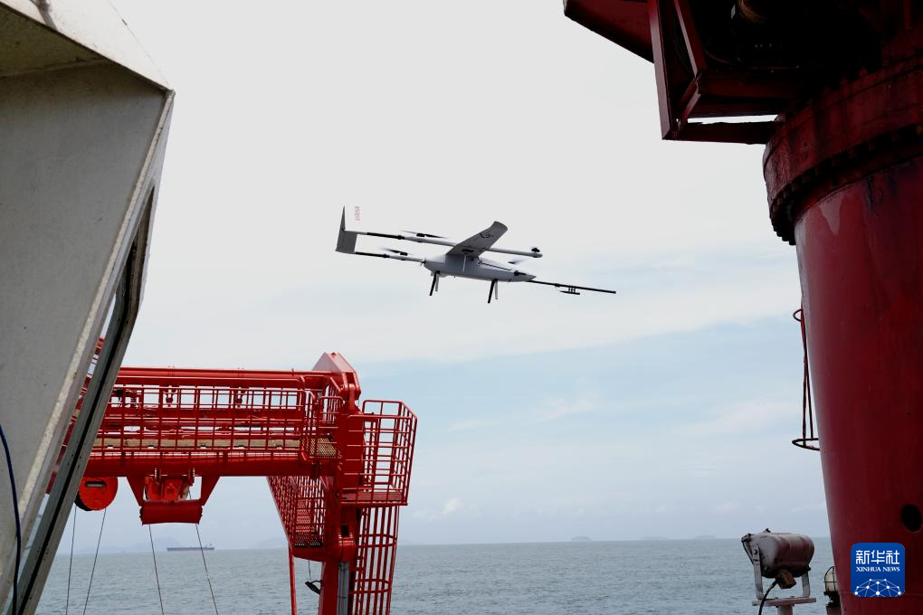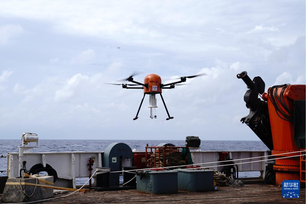 7月8日,跨域机器人从“向阳红10”号起飞开展科考试验。新华社记者 张建松 摄