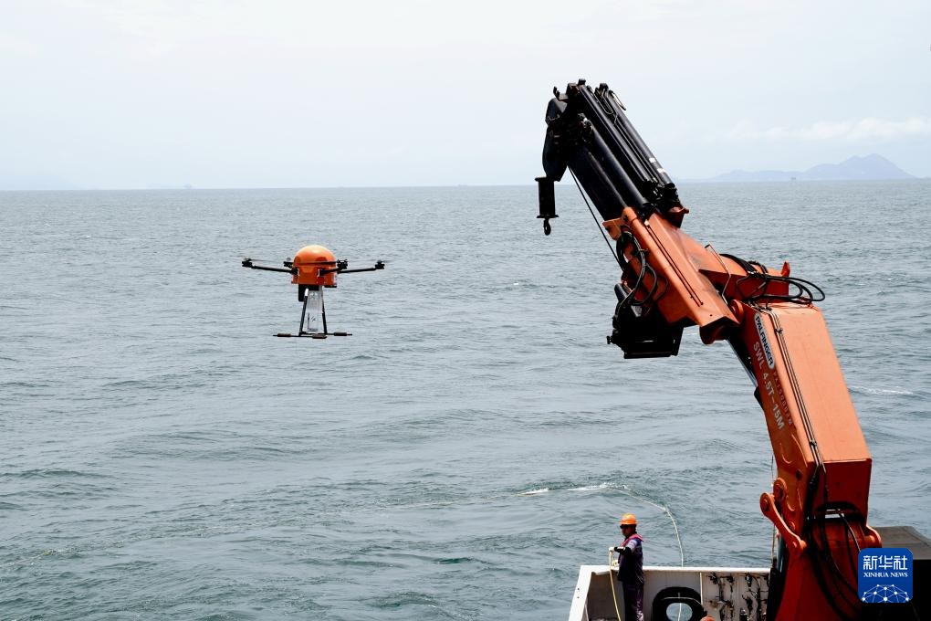 7月8日,智能海水取样无人机从海里采水归来。新华社记者 张建松 摄