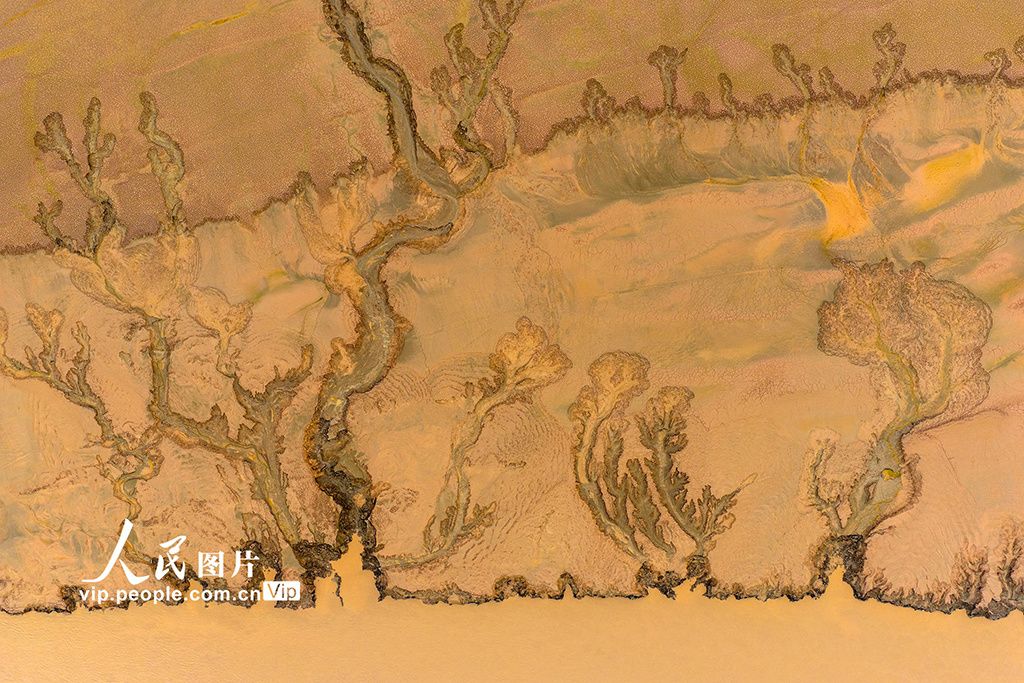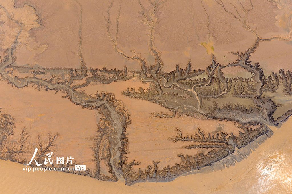 近日,河南济源,黄河小浪底调水调沙过后,由于河水急剧地下降、冲刷,聚沙成画,在小浪底库区河床形成许多美丽的图案。李培献摄(人民图片网)