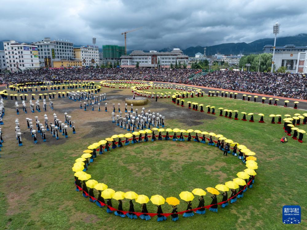 2025年彝族传统火把节开幕式(7月22日摄,无人机照片)。