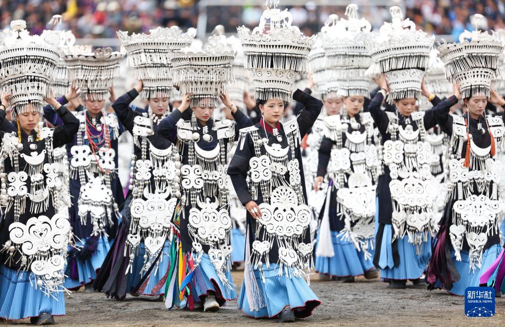 身着彝族传统银饰服饰的队伍在2025年彝族传统火把节开幕式上巡游(7月22日摄)。