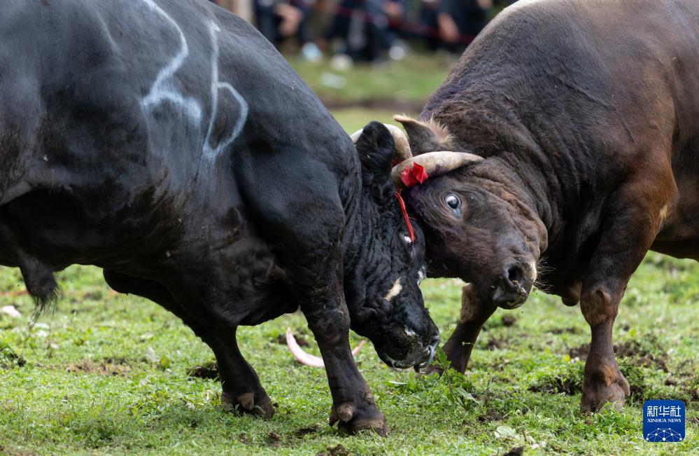 在布拖县龙潭镇包谷坪火把场举行的斗牛比赛(7月21日摄)。