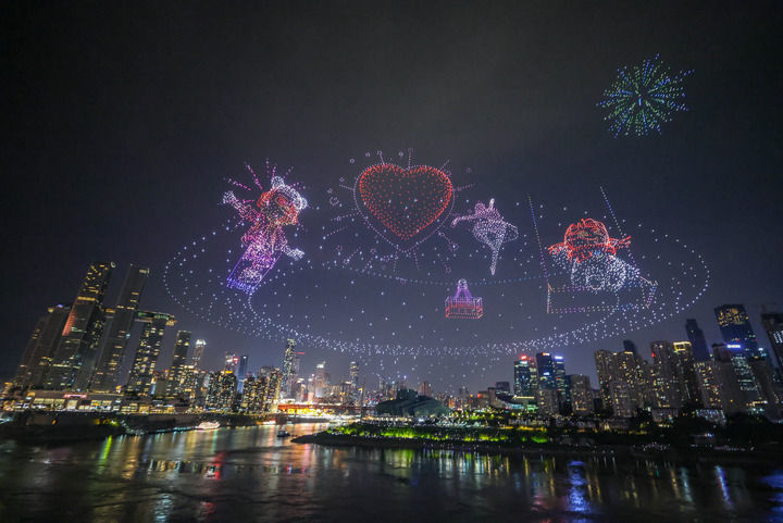 重庆:无人机灯光秀叠加不夜重庆生活节