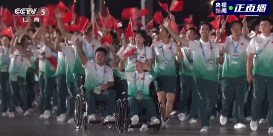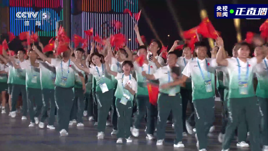 第12届世界运动会开幕式8月7日晚在四川成都举行。开幕式上,伴随着《茉莉花》的动人旋律,东道主中国代表团入场。旗手是男子技巧运动员史经纬、女子轮滑运动员郭丹。