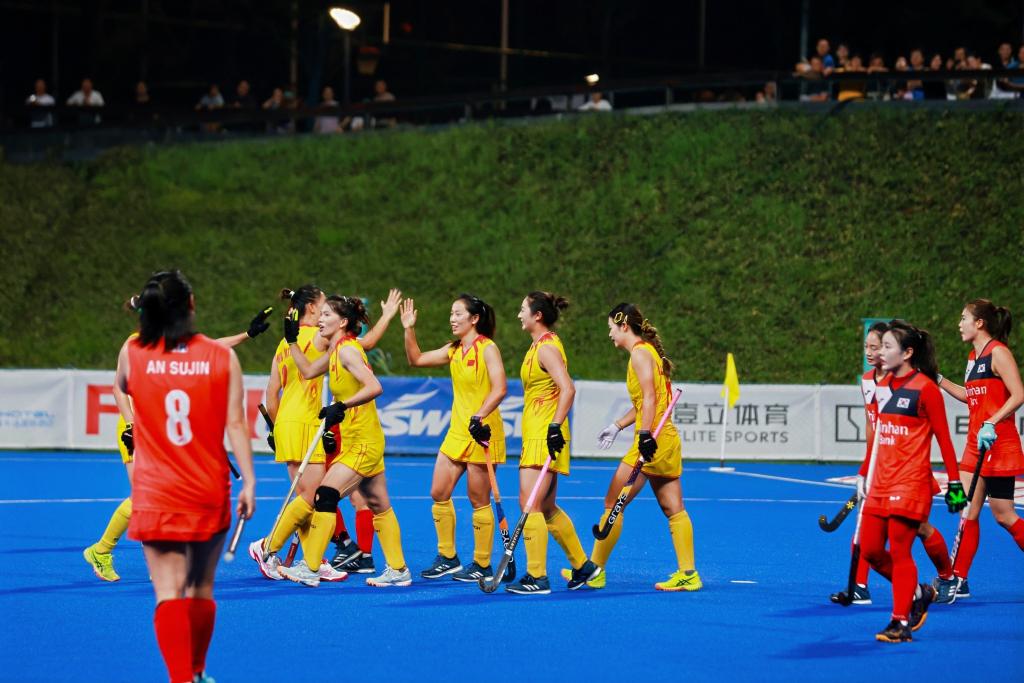 上半场比赛,中国女曲凭借钟嘉琪和陈怡在第一节的两粒进球,半场2:0领先韩国队。易边再战,中国女曲继续在场上占据主动,多次获得破门良机,其中包括两次短角球机会一次击中横梁,一次击中立柱。比赛第48分钟,中国女曲在前场断球,徐纹娱接队友妙传,帮助球队最终将比分定格为3:0。