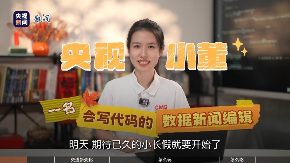 我是央视小董,一名会写代码的数据新闻编辑。明天,期待已久的小长假就要开始了!告别酷热,迎来金秋,加上连放八天假,我发现,在旅游平台上,国庆中秋假期国内出游意愿同比去年增长三成,假期前夜的多条热门线路火车票开售就“秒光”。