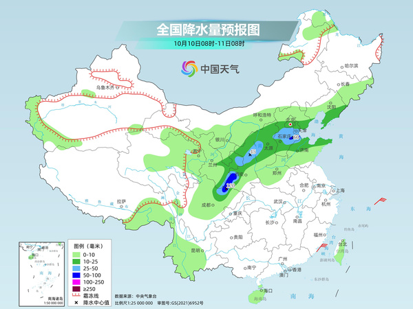 未来几天,北方秋雨仍将继续,降雨总体不会很激烈,但持续时间长,累计雨量同期少见,局地可能打破10月单日降水纪录。其中今天华北一带为降雨核心区域,山西中北部、河北中部、天津等地部分地区有大到暴雨,河北西部局地有大暴雨,明天开始雨带将向南转移,华北北部雨势有所减弱。