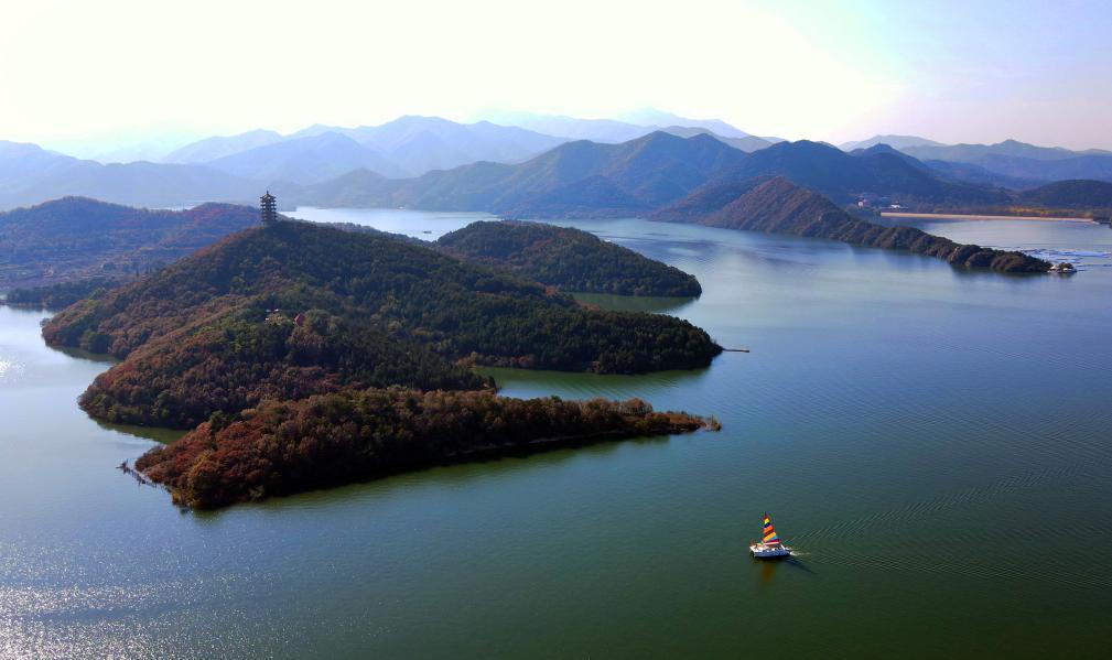 2021年10月23日拍摄的北京市平谷区金海湖景区内景(无人机照片)。新华社记者任超 摄