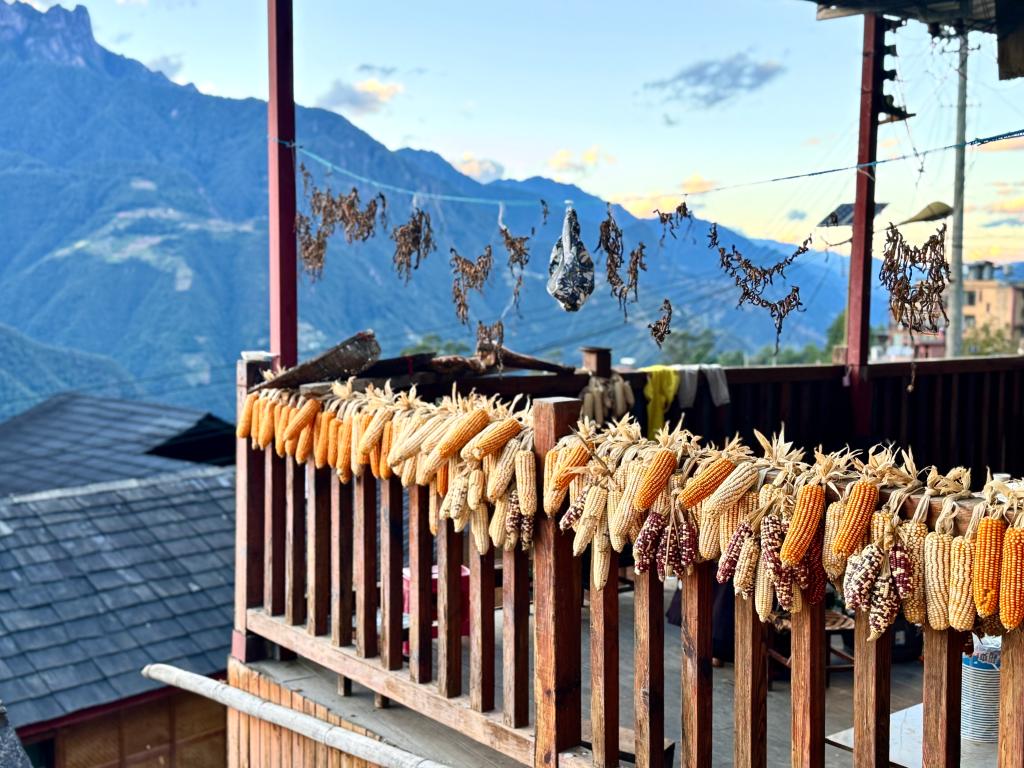 图为10月21日拍摄的云南省怒江傈僳族自治州福贡县匹河怒族乡老姆登村村民晾晒的玉米。新华社记者胡了然 摄