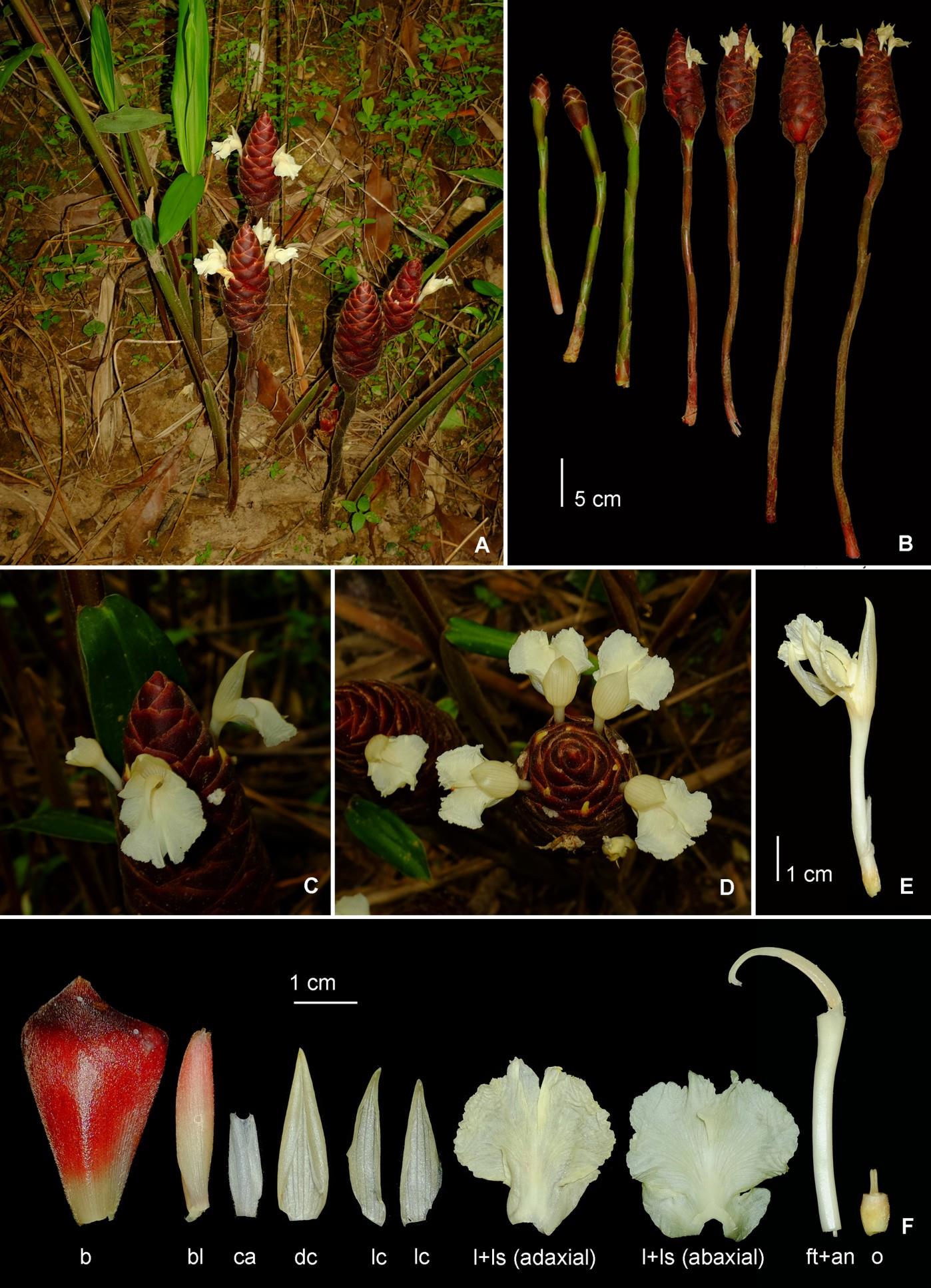 据中国科学院华南植物园姜科植物专家白琳博士介绍,该亚种的标本最初在昆明植物研究所的种质资源库凭证标本中被发现,当时为四份无花无果的标本,被鉴定为绿苞山姜,但是叶枕这一特征指向该种应为姜属植物。
