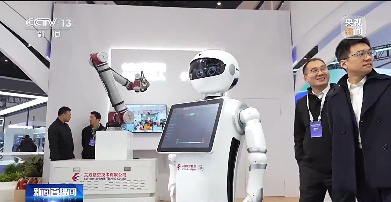 总台央视记者 陈俏:现在我身边是由我国自主研发的、全球第一款人工智能航空服务的机器人,这个机器人可以为您提供像值机、升舱,还有客舱等全流程的航空服务。它的名字叫小东,现在我来跟它互动一下。