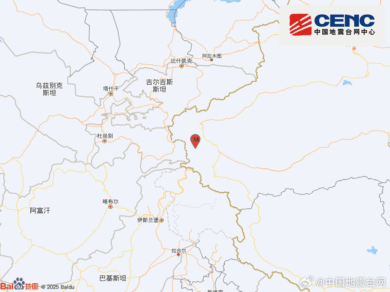 央视网消息:据@中国地震台网微博消息,中国地震台网正式测定:11月06日09时02分在新疆克孜勒苏州阿克陶县(北纬38.28度,东经75.60度)发生4.2级地震,震源深度96千米。