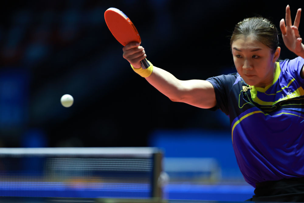 11月12日,山东队选手陈梦在比赛中回球。新华社记者 刘续 摄