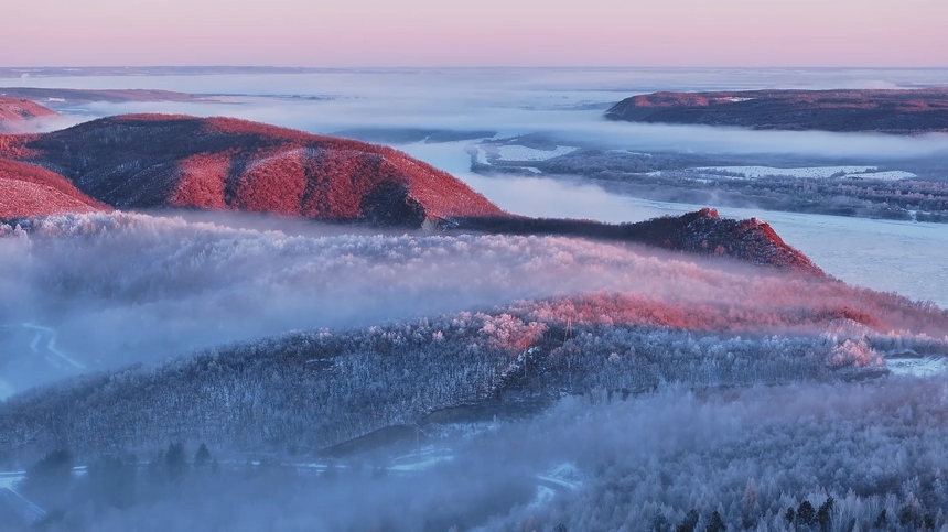 近日,黑河市爱辉区迎来一场梦幻雾凇景致。初冬时节的爱辉区卧牛湖景区悄然换上了银装,连绵的雾凇如玉树琼枝,盛放于湖畔山间。这一抹属于爱辉的初冬韵色,不仅点缀了北国小城的静谧风光,更让往来游客提前邂逅了一场冰雪童话般的视觉盛宴。(徐成龙、关桐、胡鹏博)
