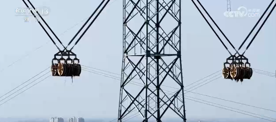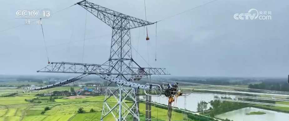 在安徽省六安市施工现场,90米的高空中,6根输电导线向着塔位匀速前进。随着所有导线平稳抵达预定位置,“陕电入皖”工程安徽段实现全线贯通。