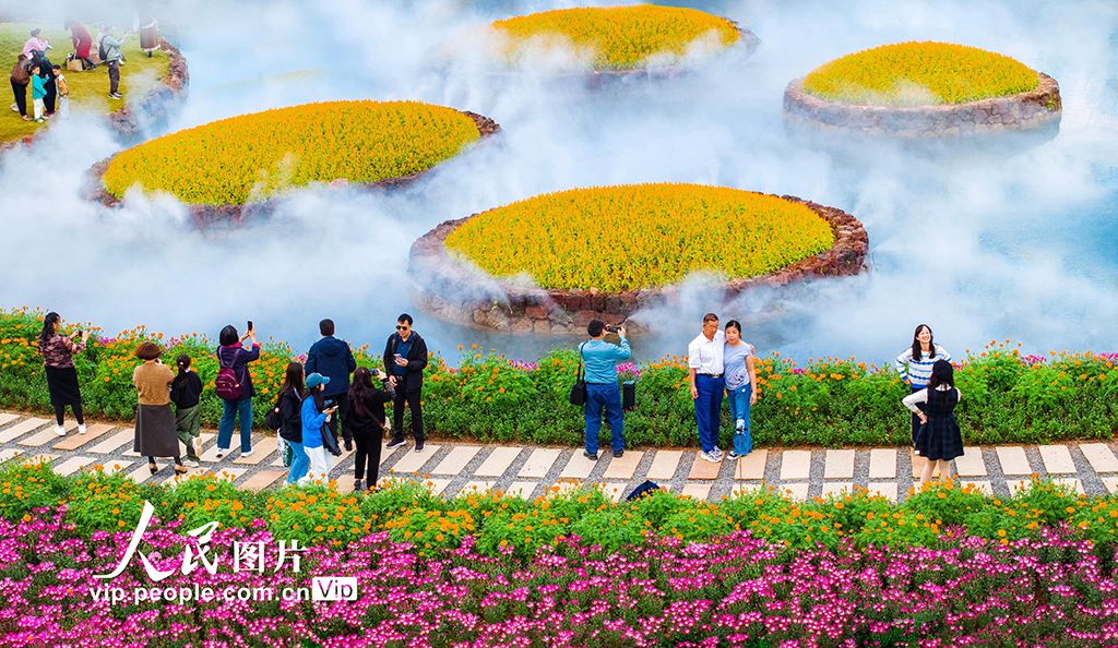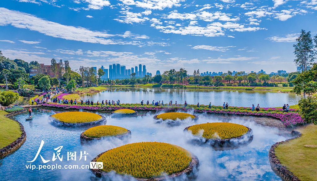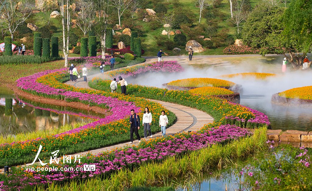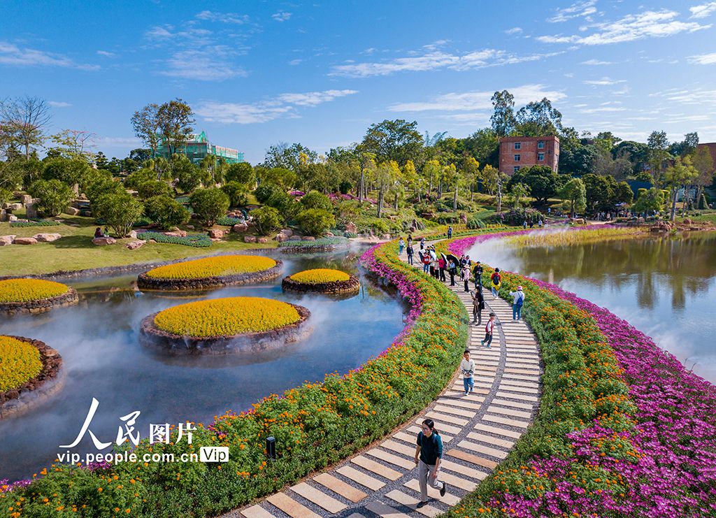 2025年11月23日,游客在广西南宁市青秀山风景区丘石花园里游玩赏花。曾祥忠摄(人民图片网)