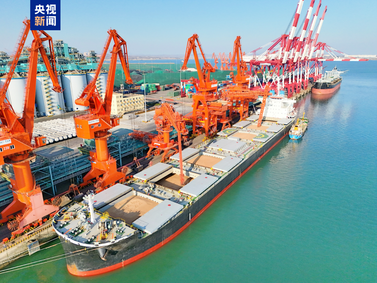 11月26日12时,在青岛港董家口港区北三粮食码头,随着全自动化粮食卸船机顺利出舱,满载68250吨小麦的粮食船仅用21小时便完成全部接卸,刷新了国内粮食码头行业接卸新纪录。