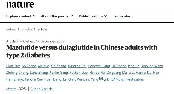 《自然》发表的两项临床研究结果表明,玛仕度肽在血糖控制和减重方面均优效于安慰剂或度拉糖肽(1.5mg),同时均显示可改善多项心血管代谢、肝脏和肾脏相关指标,为全球糖尿病合并肥胖等代谢疾病的治疗提供了新的解决方案。