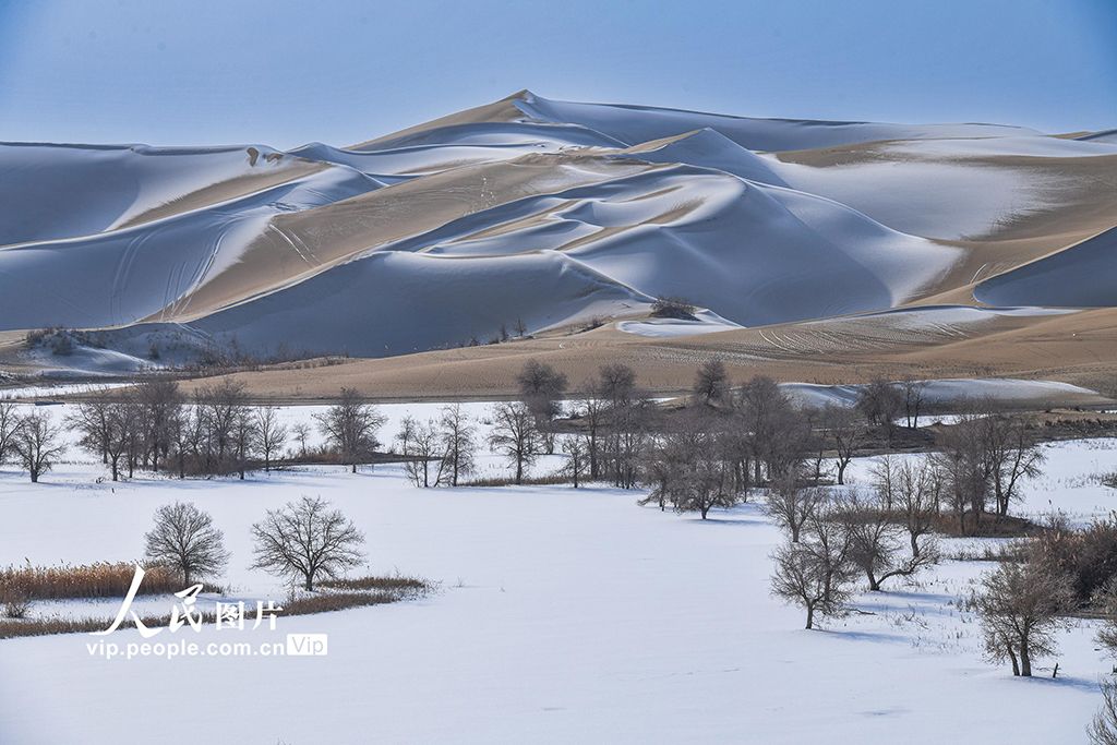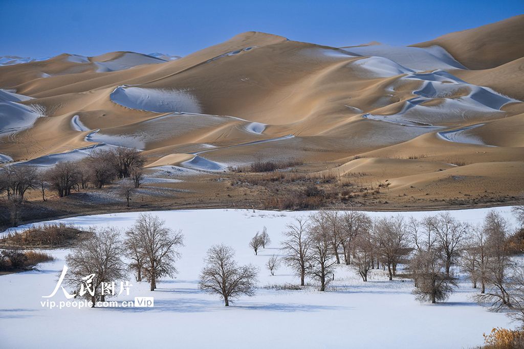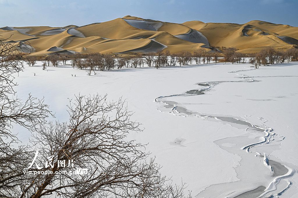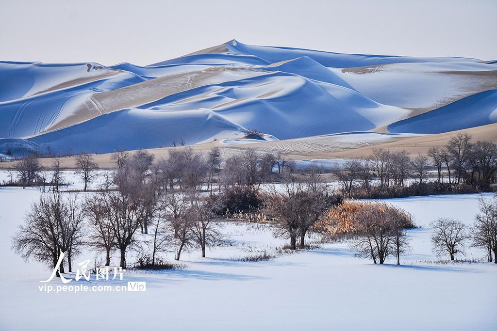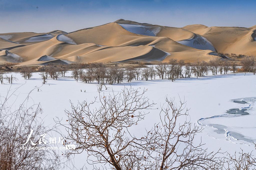 2026年1月5日,新疆尉犁县葫芦岛雪后银装素裹,大漠一片苍茫。韩峻摄(人民图片网)