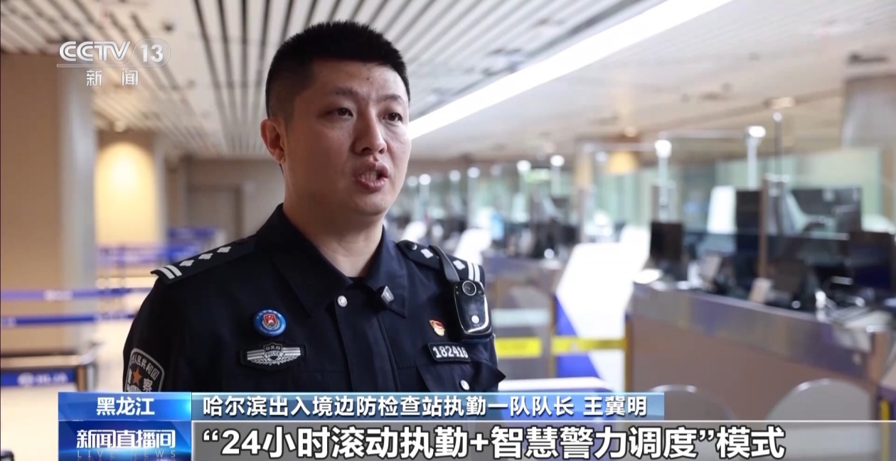 哈尔滨出入境边防检查站执勤一队队长 王冀明:我们推行“24小时滚动执勤+智慧警力调度”模式,针对夜间及凌晨航班密集的高峰时段,动态增开查验通道,为国际航线拓展筑牢坚实的通关保障。