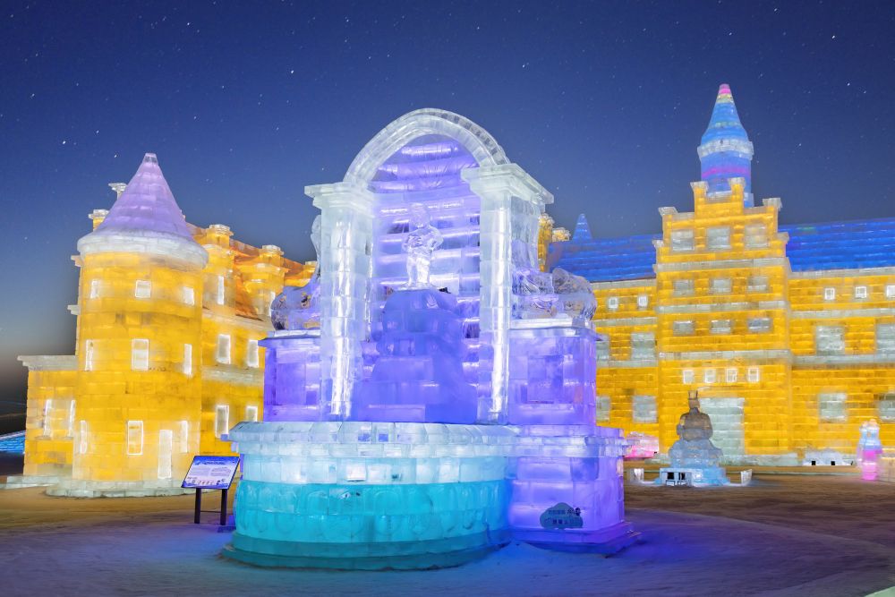 在哈尔滨冰雪大世界,来自世界各地的游客在“冰雪王国”感受冬日限定快乐。
