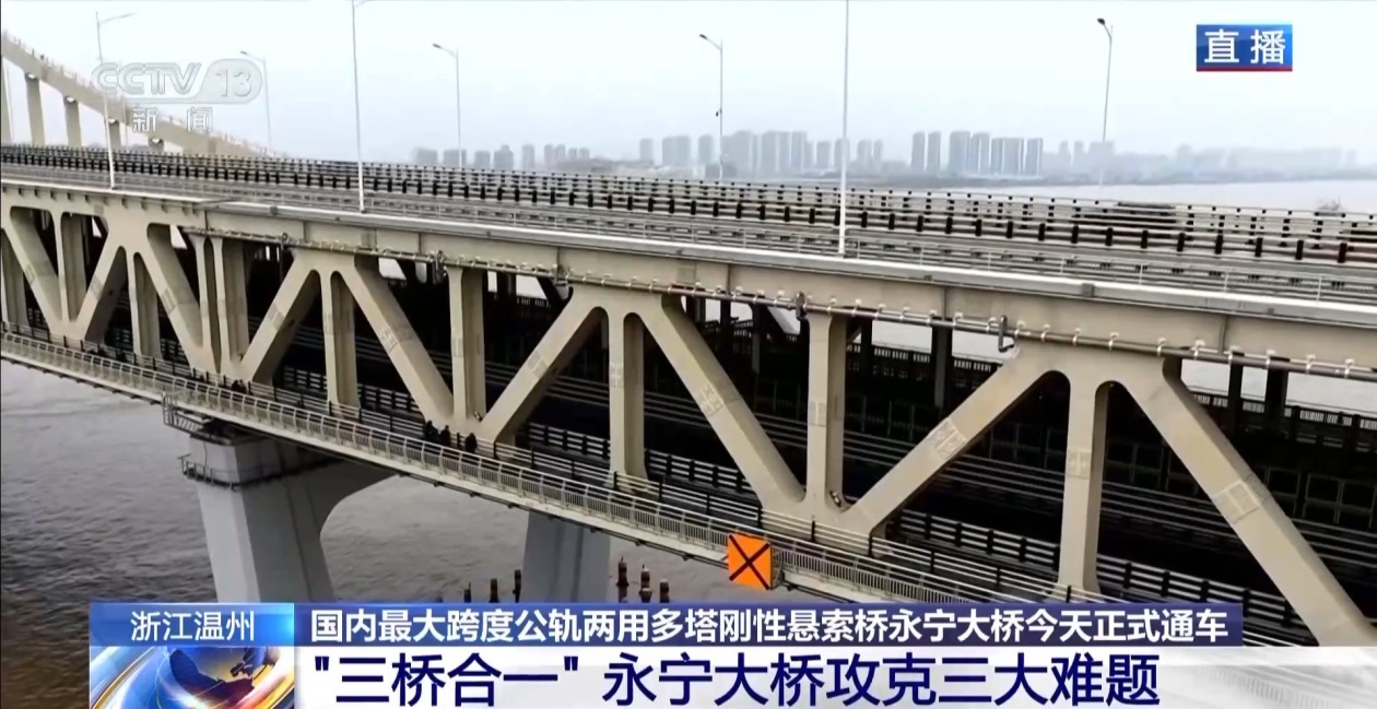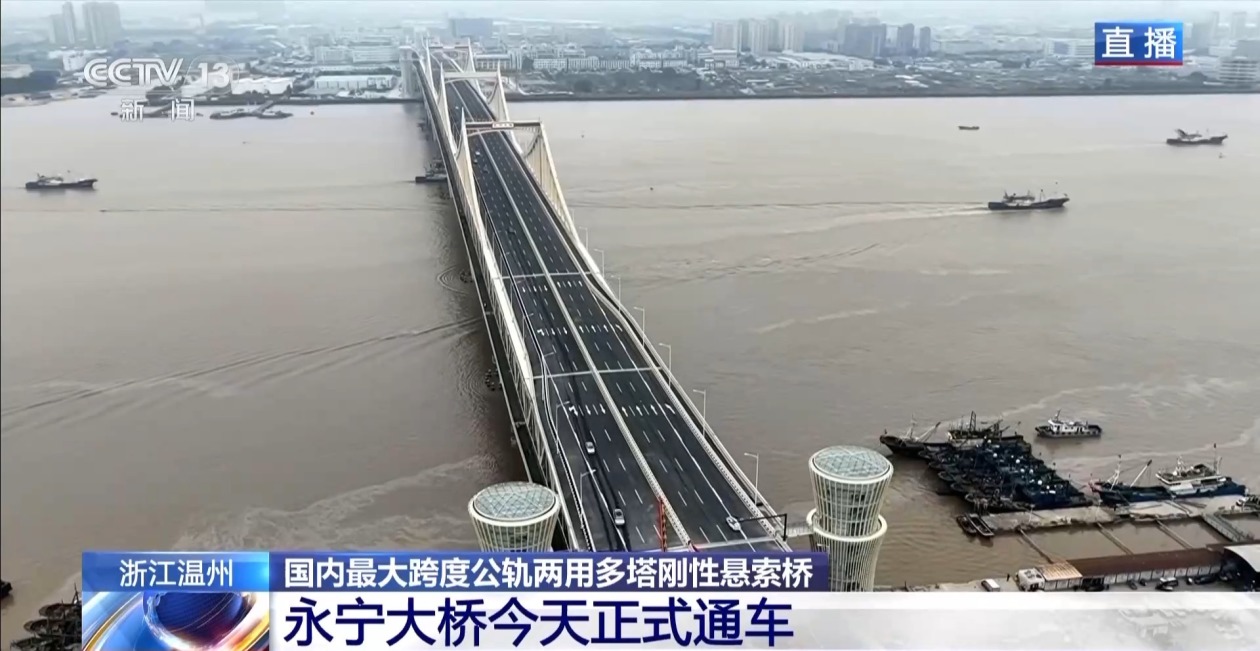 今天(6日)上午,国内最大跨度的公轨两用多塔刚性悬索桥——浙江温州瑞安永宁大桥正式通车,这座桥有什么特色、给当地带来了哪些变化?一起来看。