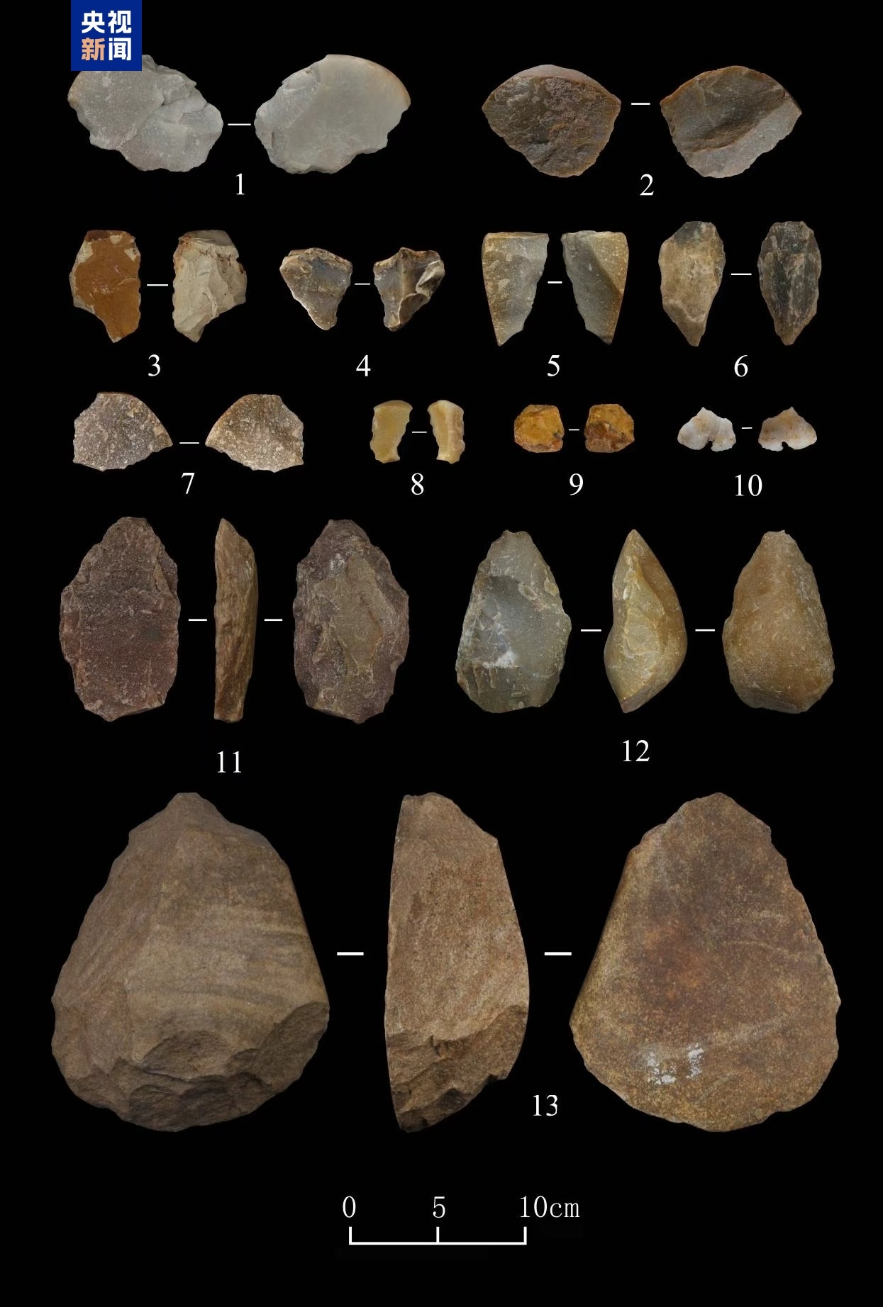△1~9.刮削器 10.石锥 11.两面器 12、13.手镐