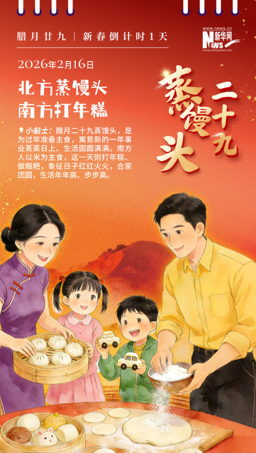 腊月二十九蒸馒头,是为过年准备主食,寓意新的一年事业蒸蒸日上、生活圆圆满满。南方人以米为主食,这一天则打年糕、做糍粑,象征日子红红火火,阖家团圆,生活年年高、步步高。