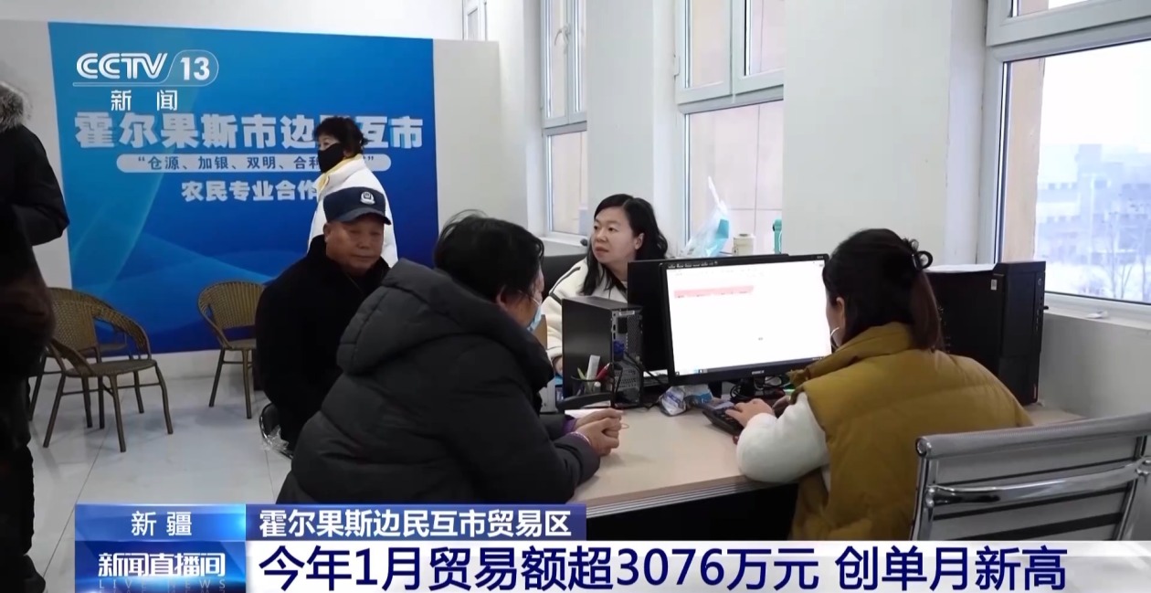 今年1月,新疆霍尔果斯边民互市贸易区交出亮眼成绩单,共交易货物2865吨,贸易额超3076万元,创下单月历史最高纪录。