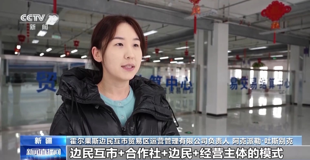 霍尔果斯边民互市贸易区运营管理有限公司负责人 阿克派勒·吐斯别克:我们持续优化“边民互市+合作社+边民+经营主体”的模式,通过简化申报流程、数字平台建设,让贸易更顺、效率更高,仅1月份就组织边民交易3989次,直接带动边民增收30.77万元。