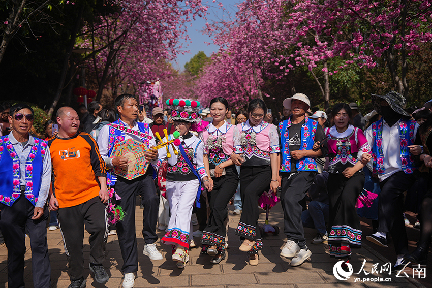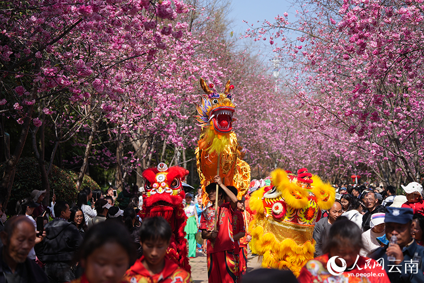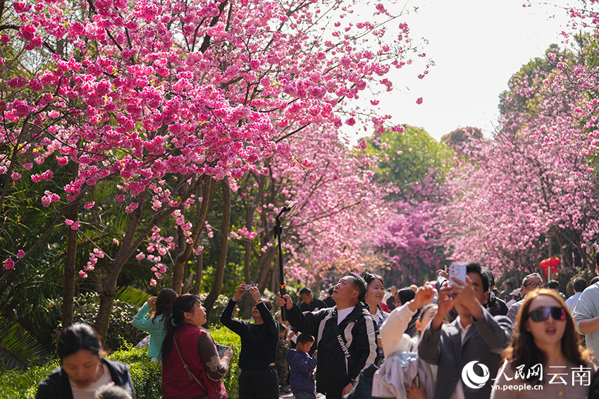 人民网昆明3月2日电 (记者李发兴)近日,昆明市呈贡区洛龙公园内的樱花竞相绽放,吸引众多市民和游客前来踏青赏花、打卡拍照,尽享春日美好。