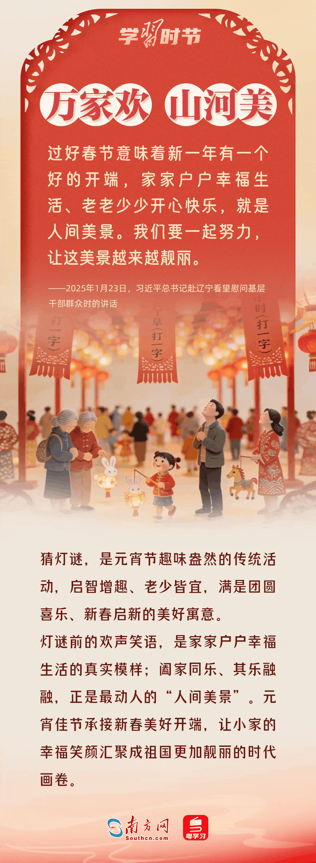 值此元宵佳节,让我们循着总书记的温暖话语,在灯火璀璨中,感受深沉的家国牵挂与殷切的深情嘱托。