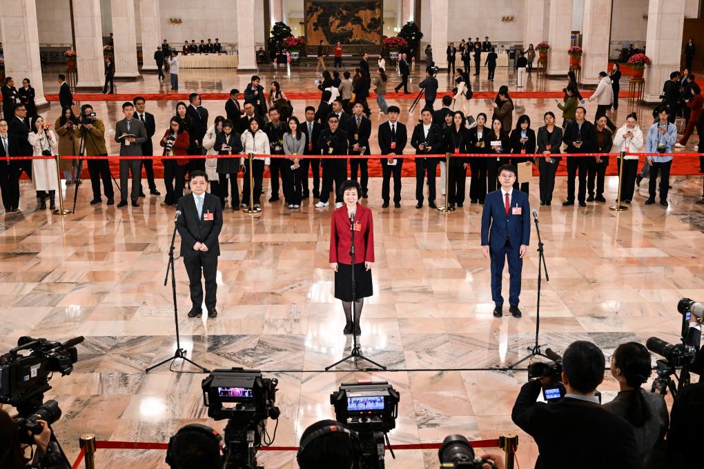 3月7日,全国政协十四届四次会议第二场“委员通道”集体采访活动在北京人民大会堂举行。
