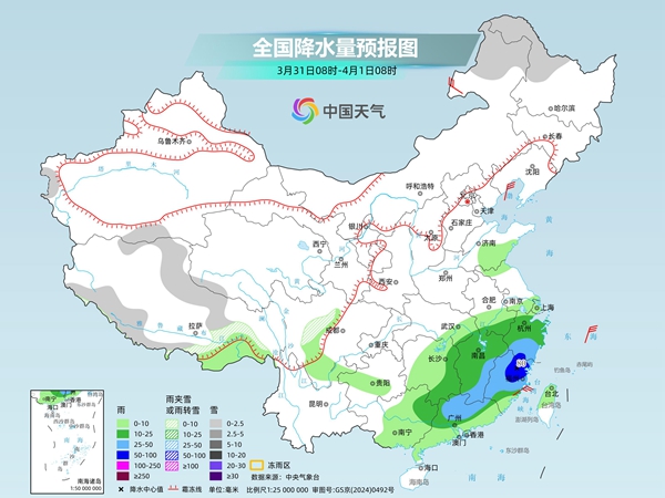 央视网消息:据中国天气网消息,今明两天(3月30日至31日),南方仍有大范围降雨,雨带会逐渐东移南压,并伴有强对流天气。在冷空气和降雨的共同影响下,东北、华北至长江中下游等地气温陆续下滑,而华南地区炎热持续,局地或有高温天气出没。