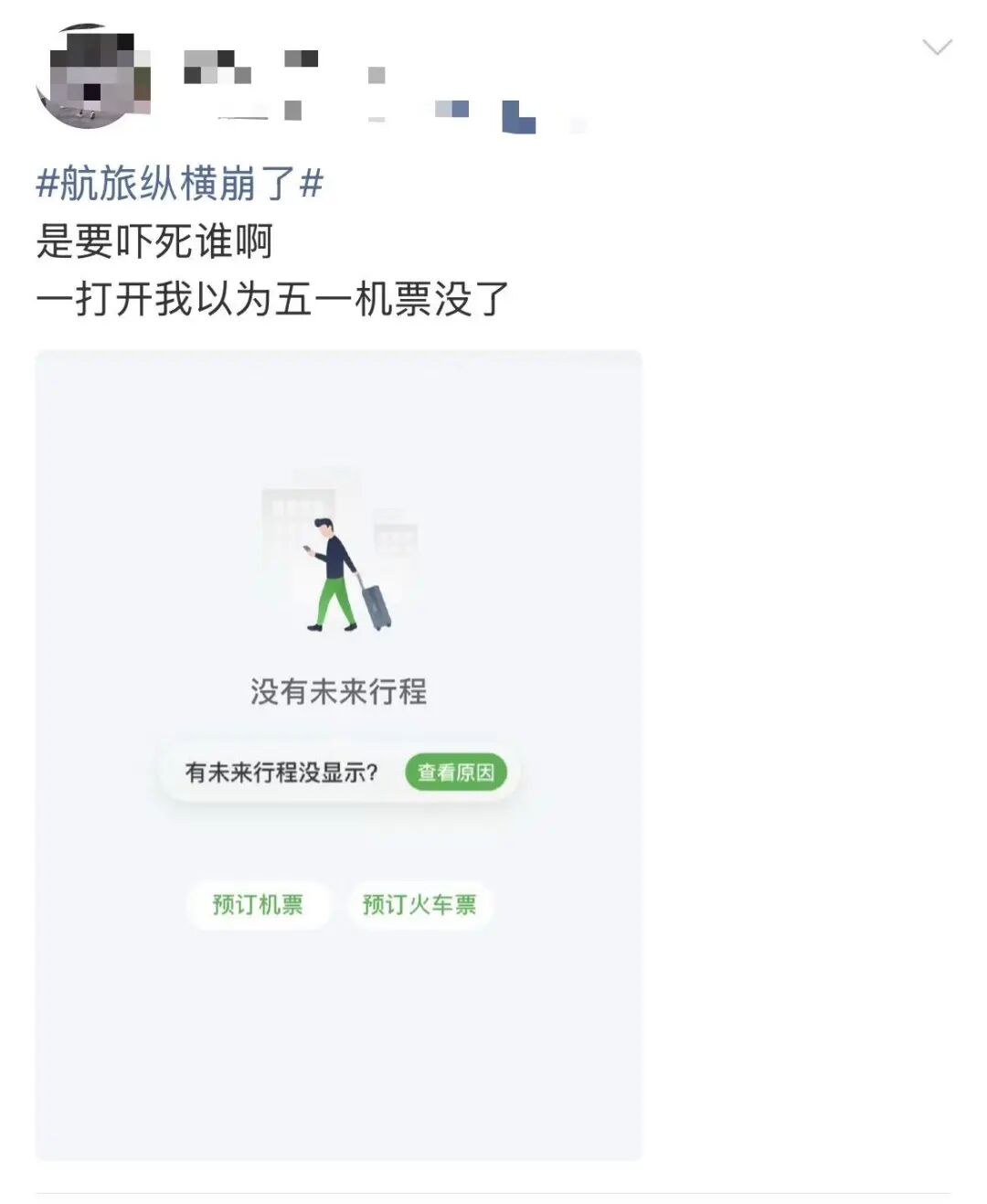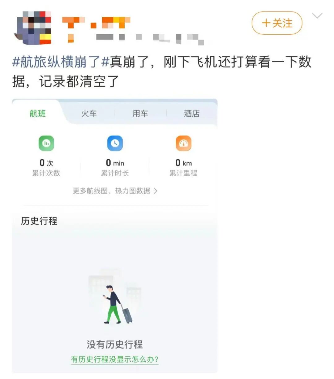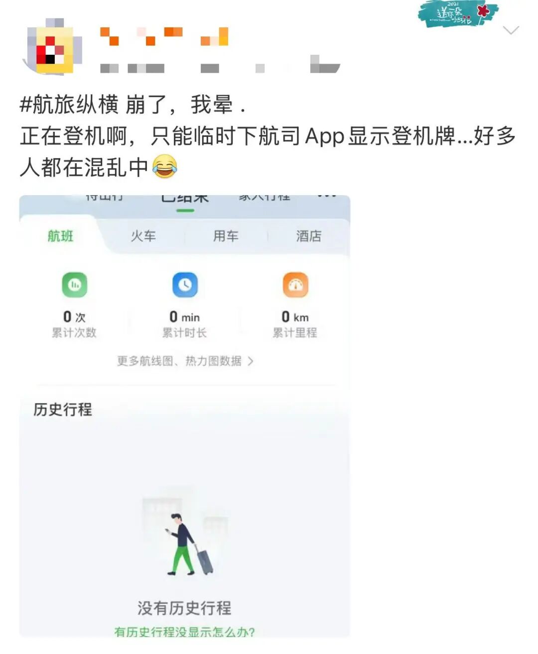 随后“航旅纵横崩了”话题词