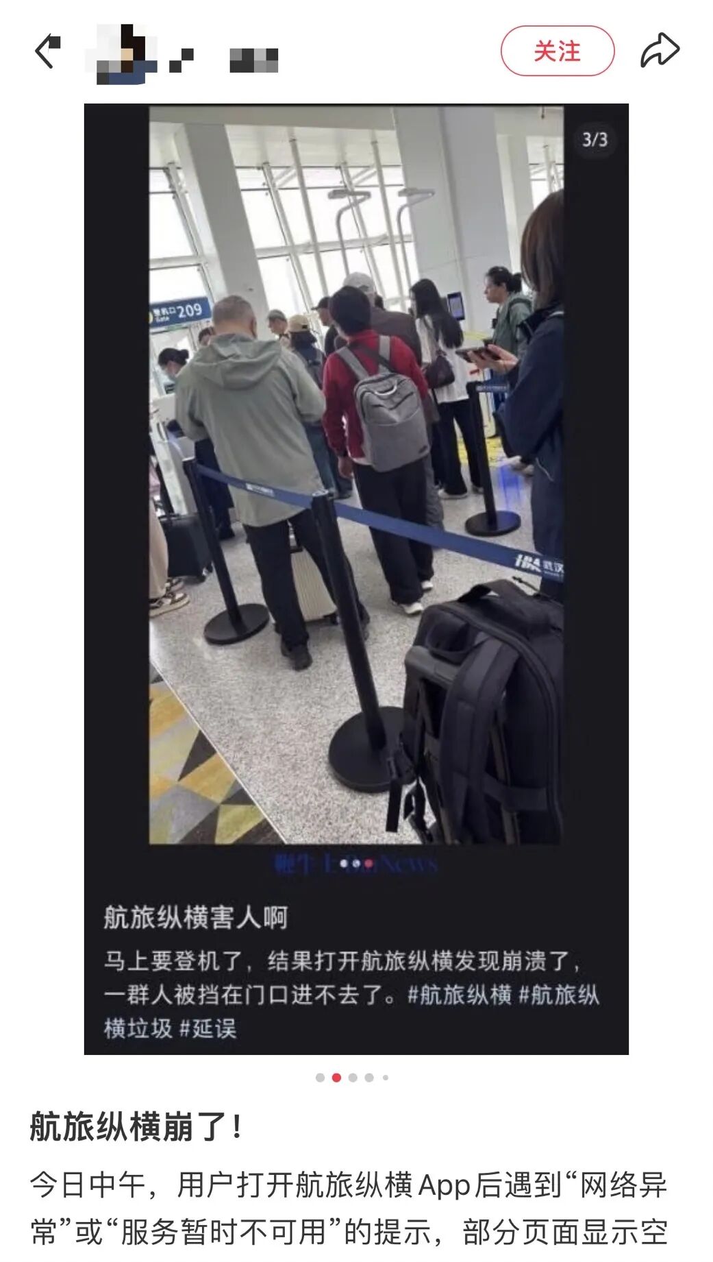 有网友发文称,“打不开,根本打不开,下午的航班想看登机口,结果点开啥也没有。”